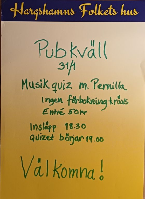 VARMT VÄLKOMMEN TILL HARGSHAMNS FOLKETS HUS!